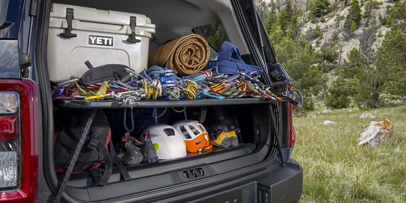 Within the Bronco Sport, impressive details will make your drive more enjoyable. A foldout camp table and integrated bottle are perfect for weekend getaways and camping trips. With the MOLLE strap system, improved storage for emergency items, groceries, or toys adds convenience to your SUV. A 110-volt AC can charge up your phone, computer, compressor, and more. With 65.2 cubic feet of cargo space and seating for up to 5, your friends and family will have plenty of room for fun.